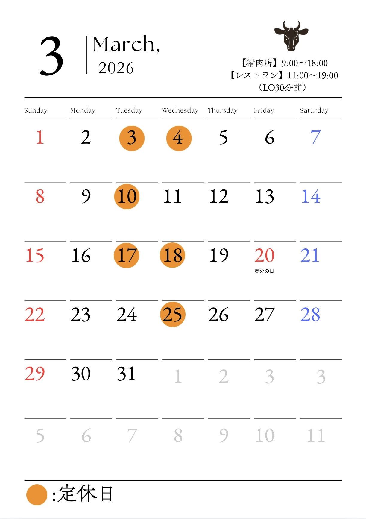 【3月定休日】